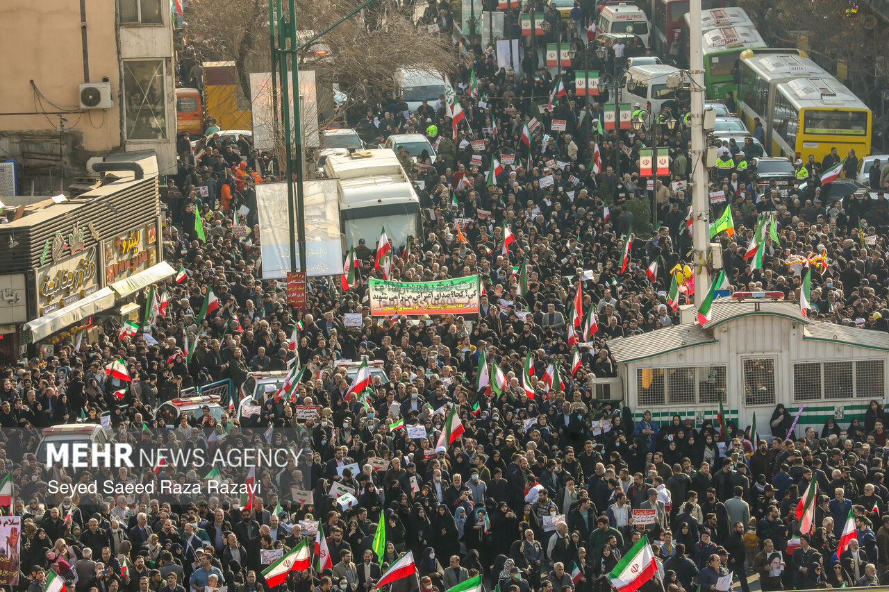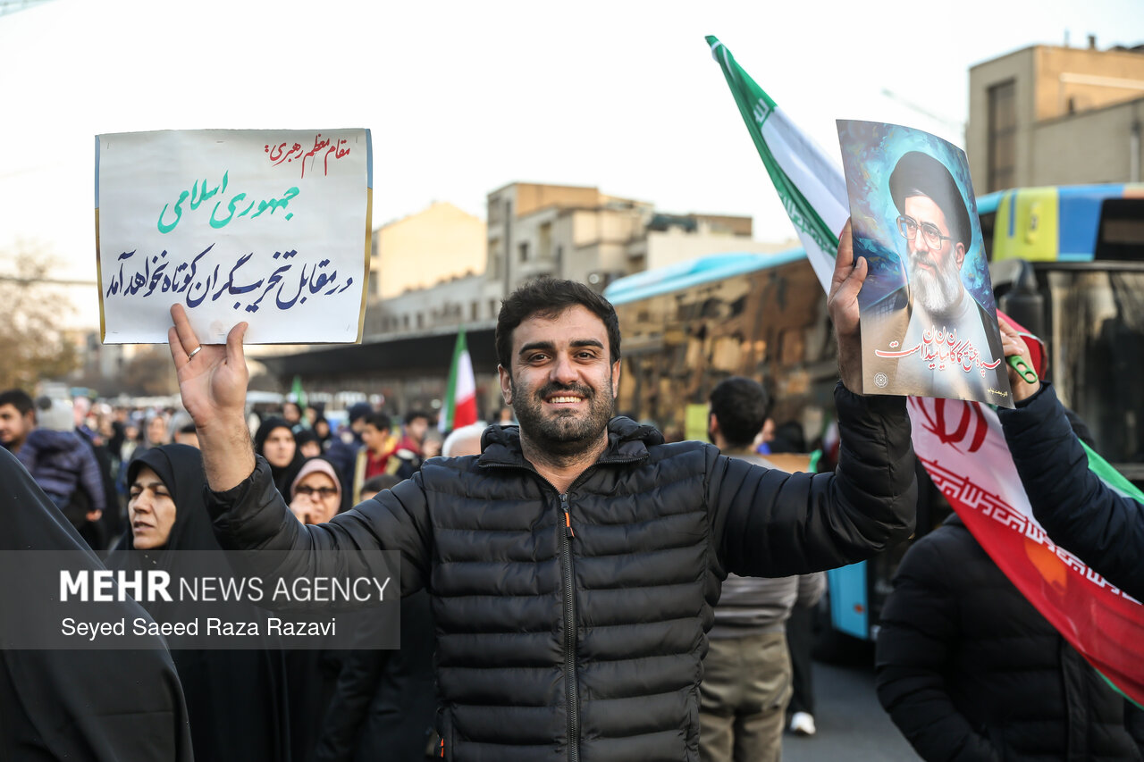 خەڵکی تاران دژی کردەوەی تیرۆریستی ئاژاوەچییەکانی سەر بە ڕژێمی زایۆنی و ئەمریکا لە ڕۆژانی رابردوو لە هەندێ ناوچەی ئێران و بە تایبەتی تارانی پایتەخت هاتنە سەر شەقام.
