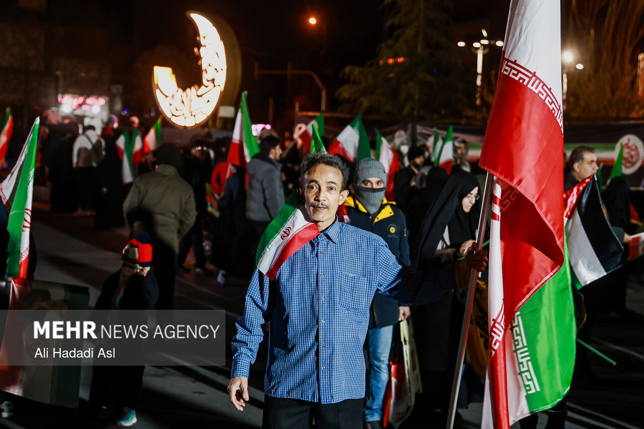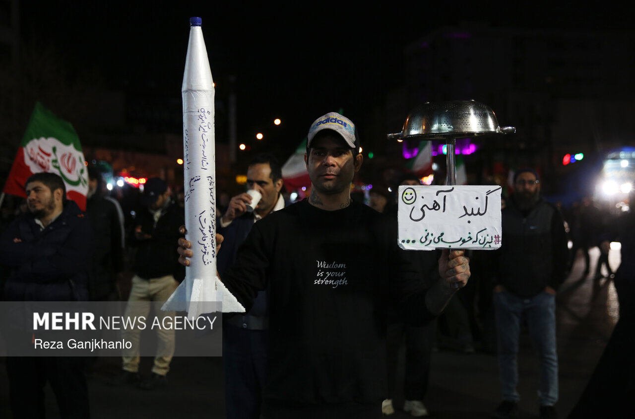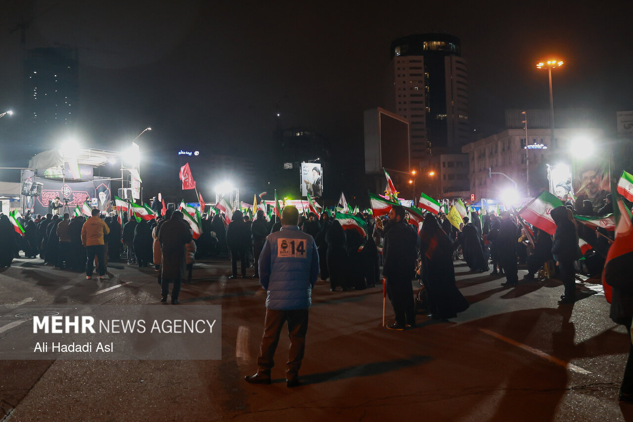 خەکی تاران زیاتر لە یەک مانگە وەکوو دیکەی شارەکانی ئێران لە ژێر بوردومانی دوژمنی زایۆنی ئەمریکایدا بۆ پشتیوانی لە شەرڤانانی کۆماری ئیسلامی ئێران لە سەر شەقامن.