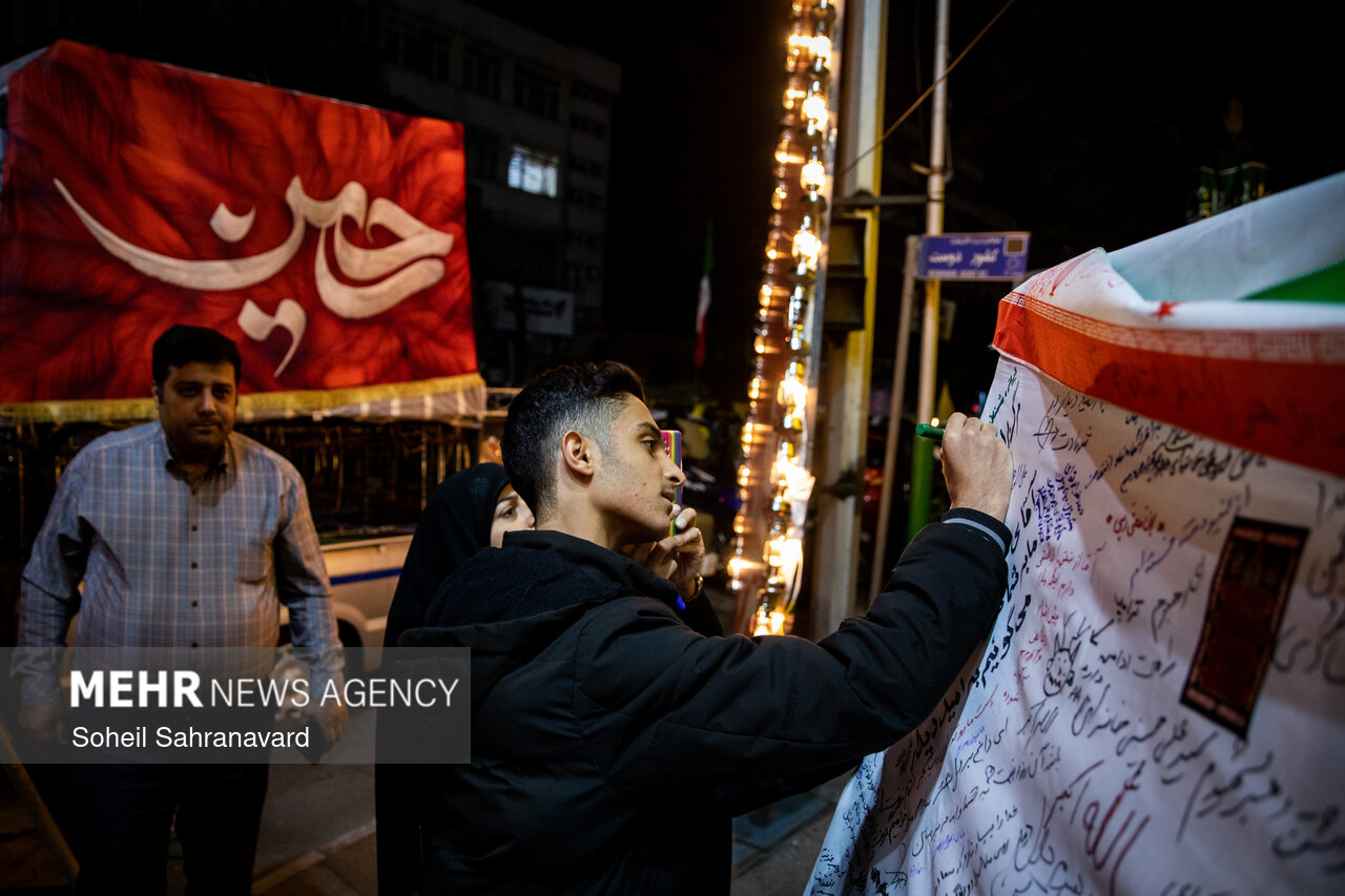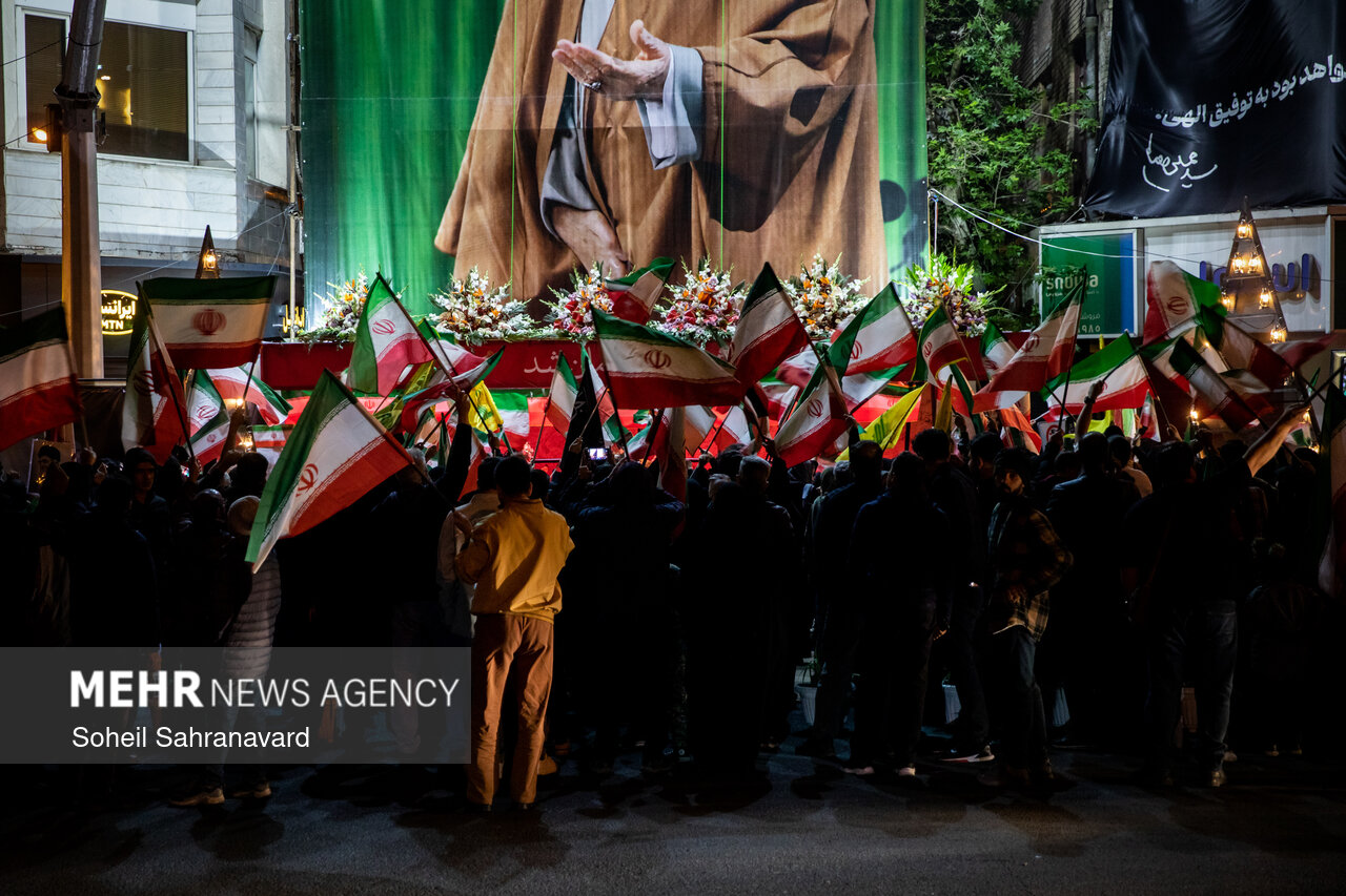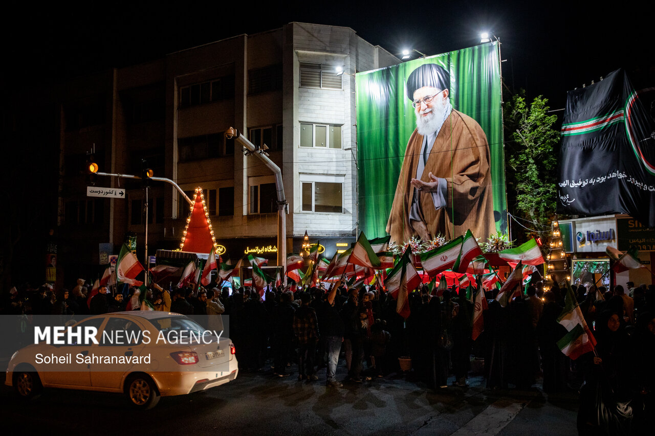 ئەم وێنە سەرەنجڕاکێشانە بەشێک لە خرۆشی خەڵکی ئێران نیشان دەدات کە شەوانە هەر وەکوو بزاڤێکی نەتەوەیی دێنە سەر شەقام بۆ پشتیوانی لە ڕێبەری ئێران و هێزە چەکدارەکان بۆ شەڕ لەگەڵ ئەمریکا و ئیسڕائیل.