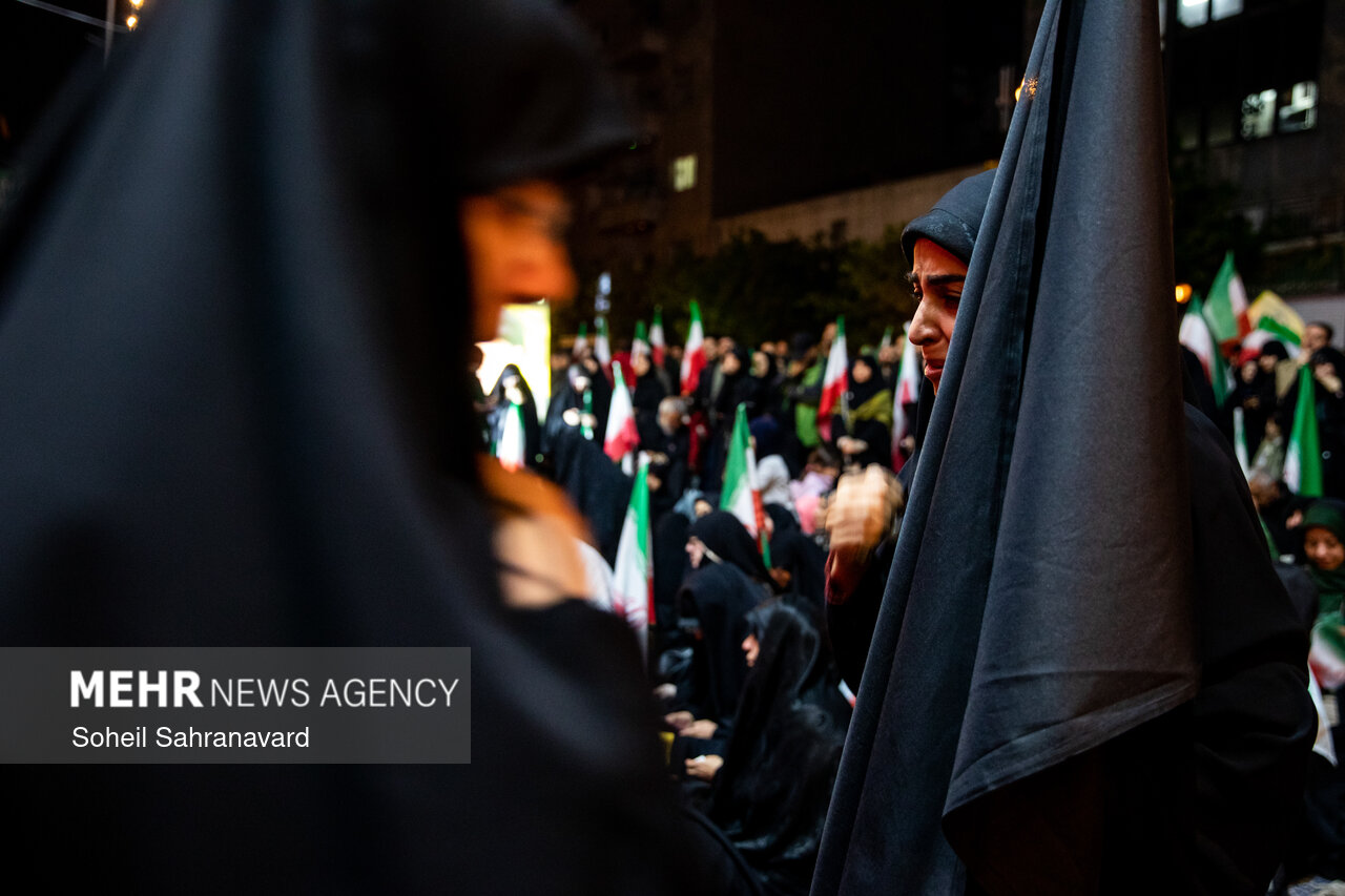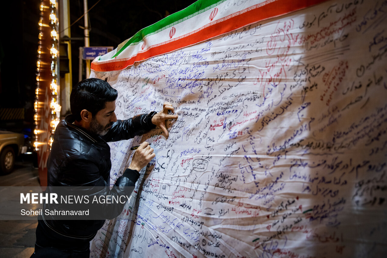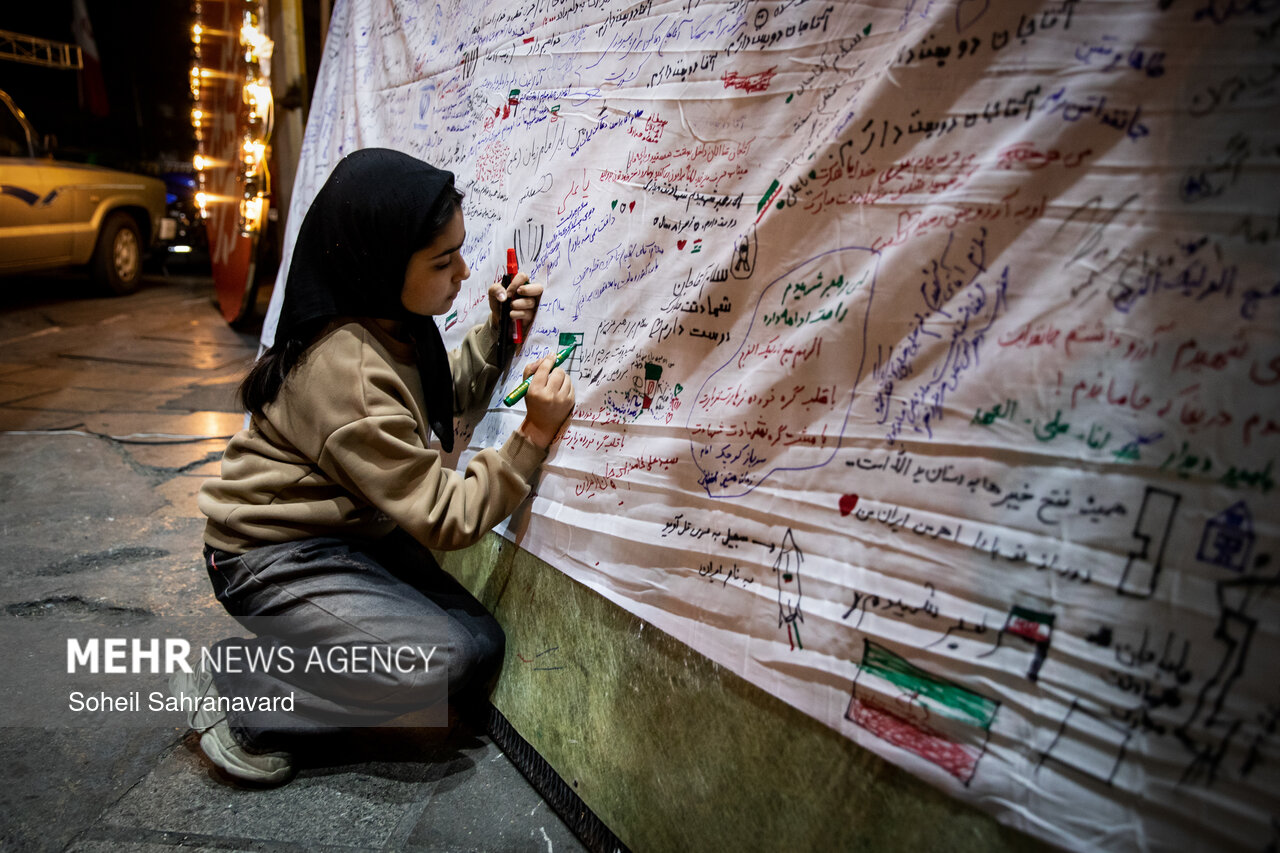 ئەم وێنە سەرەنجڕاکێشانە بەشێک لە خرۆشی خەڵکی ئێران نیشان دەدات کە شەوانە هەر وەکوو بزاڤێکی نەتەوەیی دێنە سەر شەقام بۆ پشتیوانی لە ڕێبەری ئێران و هێزە چەکدارەکان بۆ شەڕ لەگەڵ ئەمریکا و ئیسڕائیل.